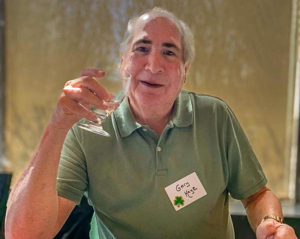 At the St. Patty's day party, Gary K. toasts to the phographer.